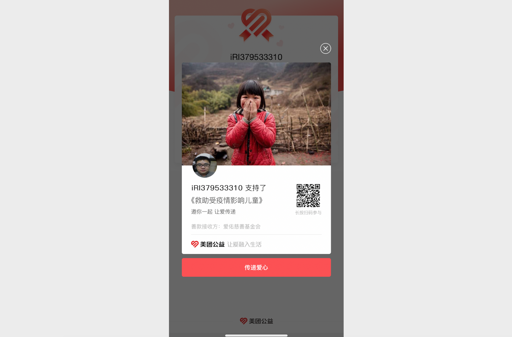 通过美团公益将近期打赏捐助给受疫情影响儿童。