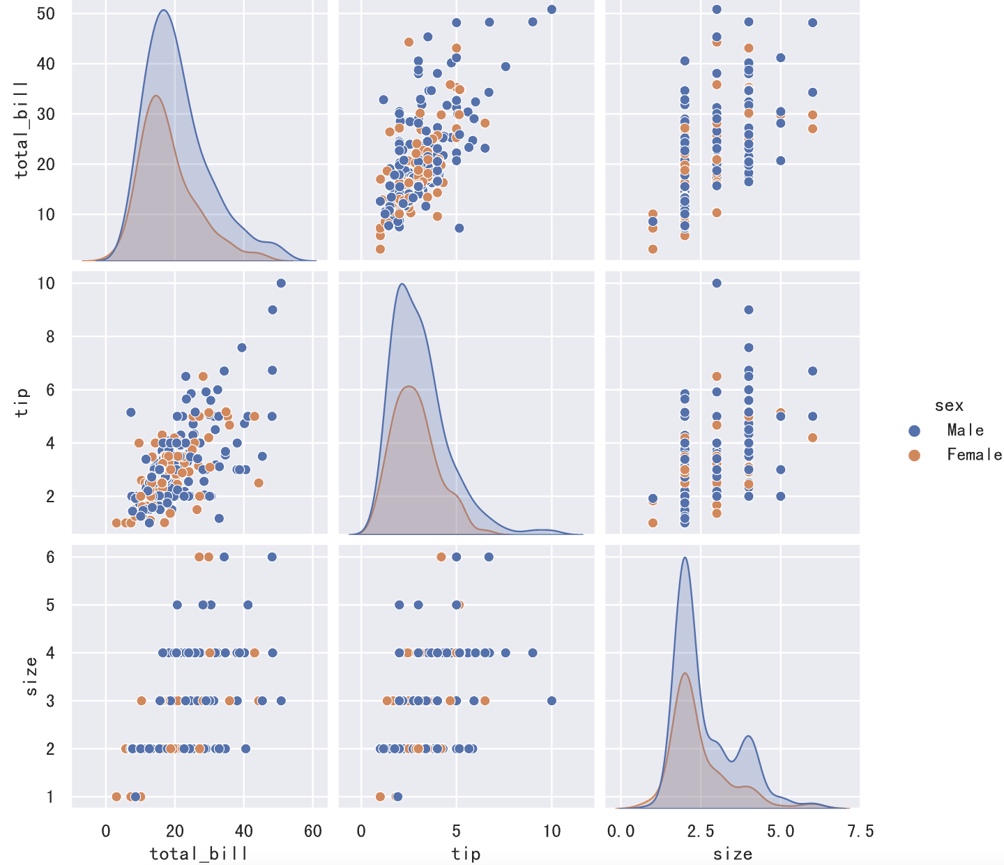 如果想了解变量之间的两两关系,我们可以绘制点对图,代码和效果如下所示。