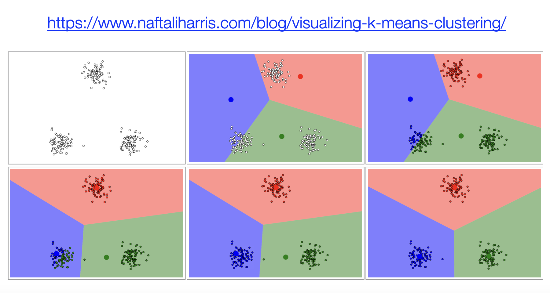 重复上面两个动作,直到质心不再变化或变化小于某个阈值,这就确保了算法的收敛性。
